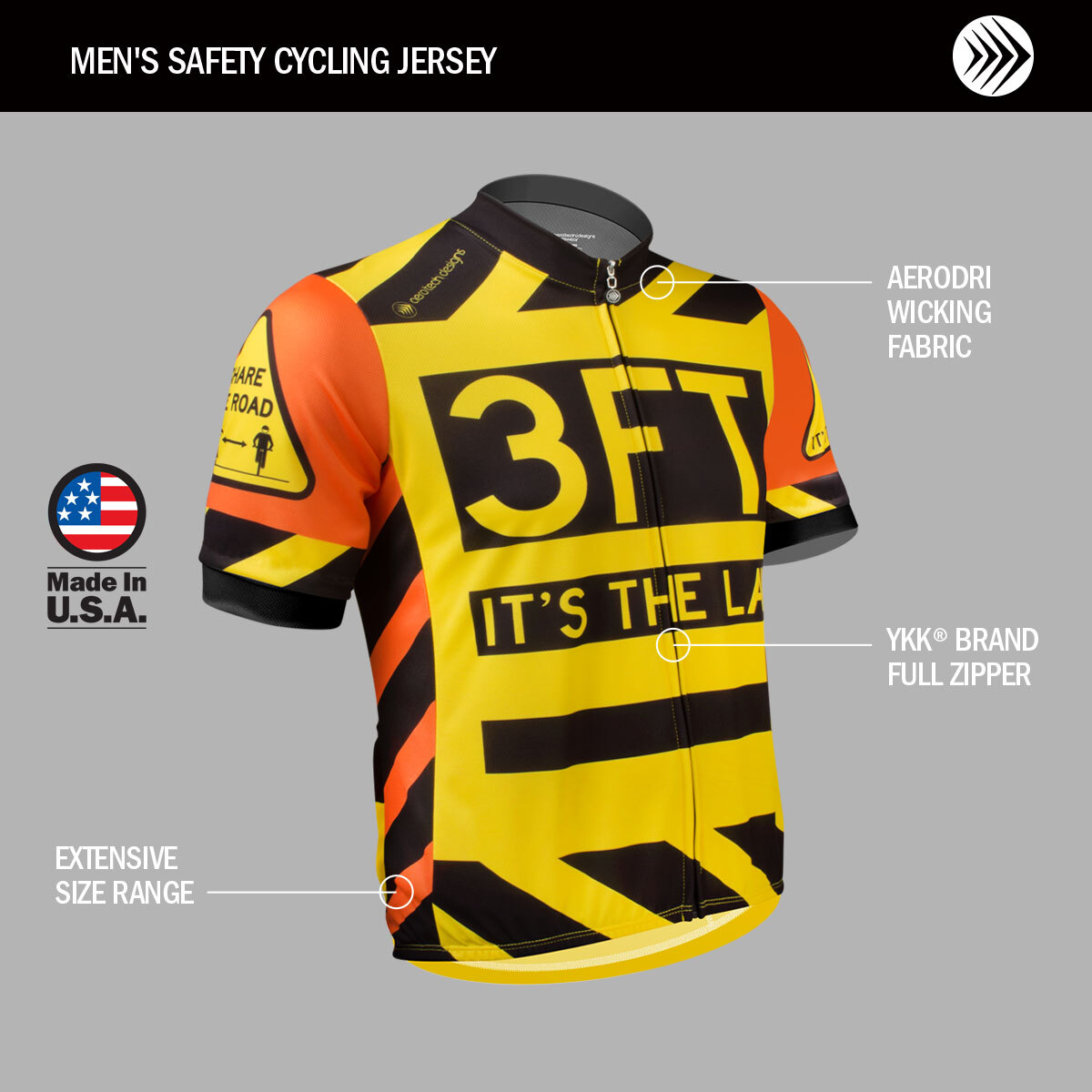 Crafted with AeroDri 100% performance polyester fabric, the jersey offers moisture control, breathability, and comfort for all-day rides