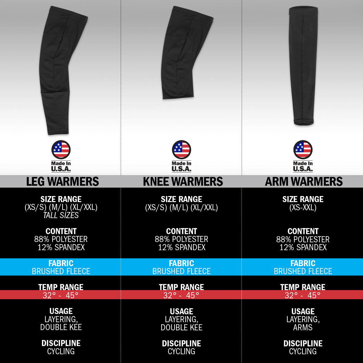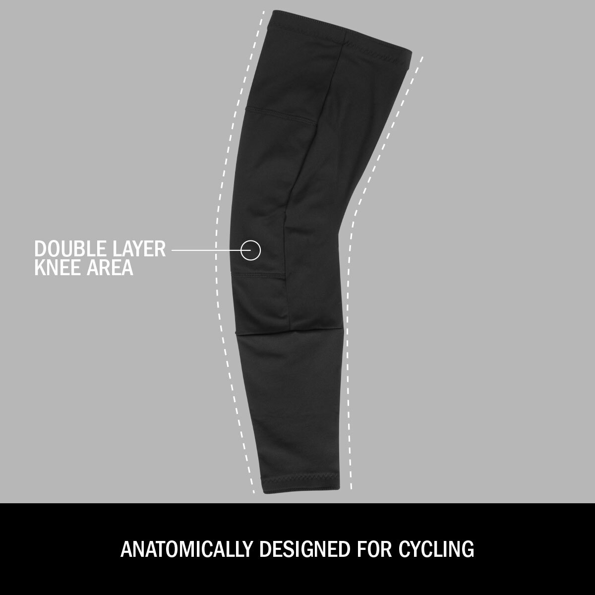 Anatomically shaped leg warmer with a double-layer knee panel for extra warmth and smooth pedaling