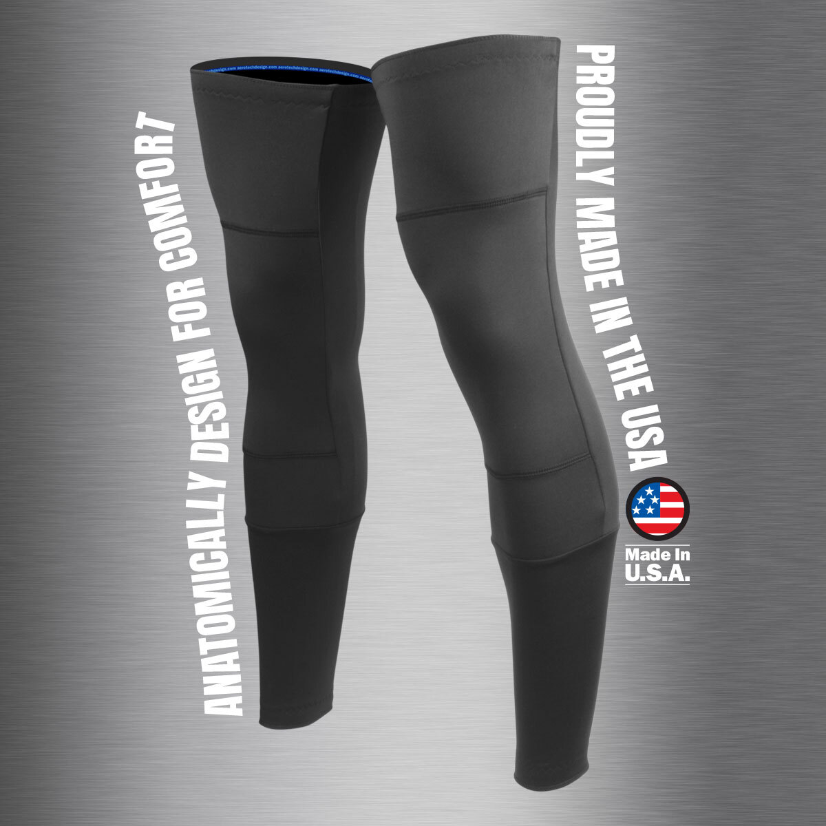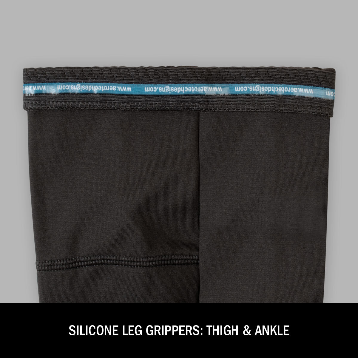 Silicone grippers at thigh and ankle keep the warmers securely in place without slipping