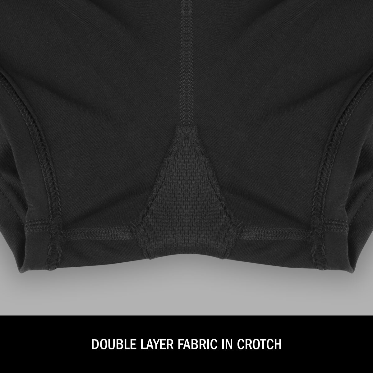 Includes a double layer of fabric in the crotch for increased durability and reinforcement