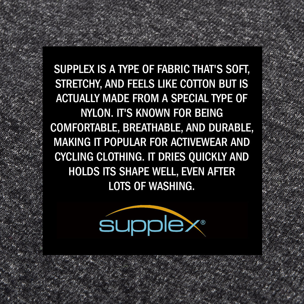 - Soft and luxurious heathered gray Supplex fabric