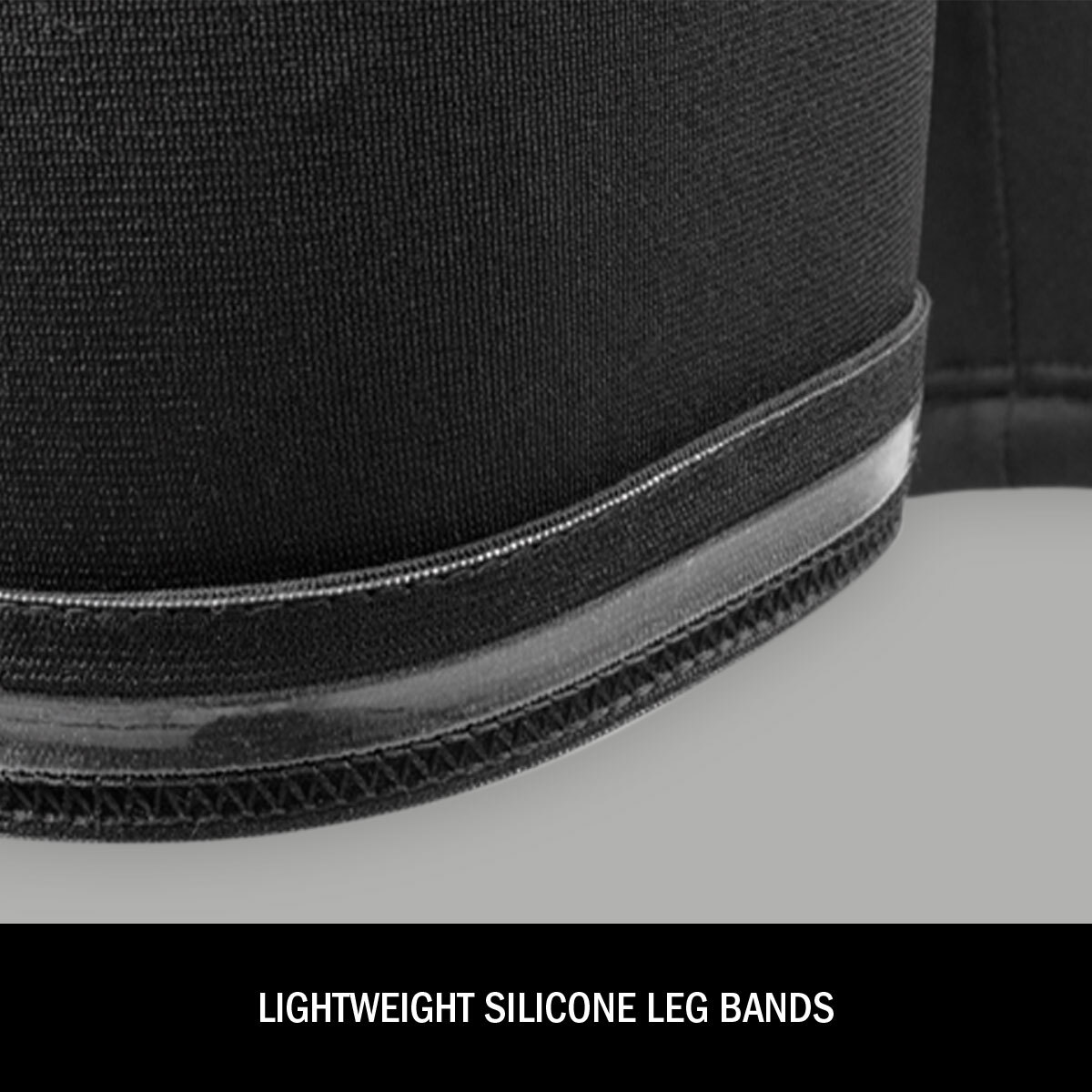 Thin silicone grippers gently secure the hems so the legs stay put without pinching. They create a comfortable seal that prevents ride-up