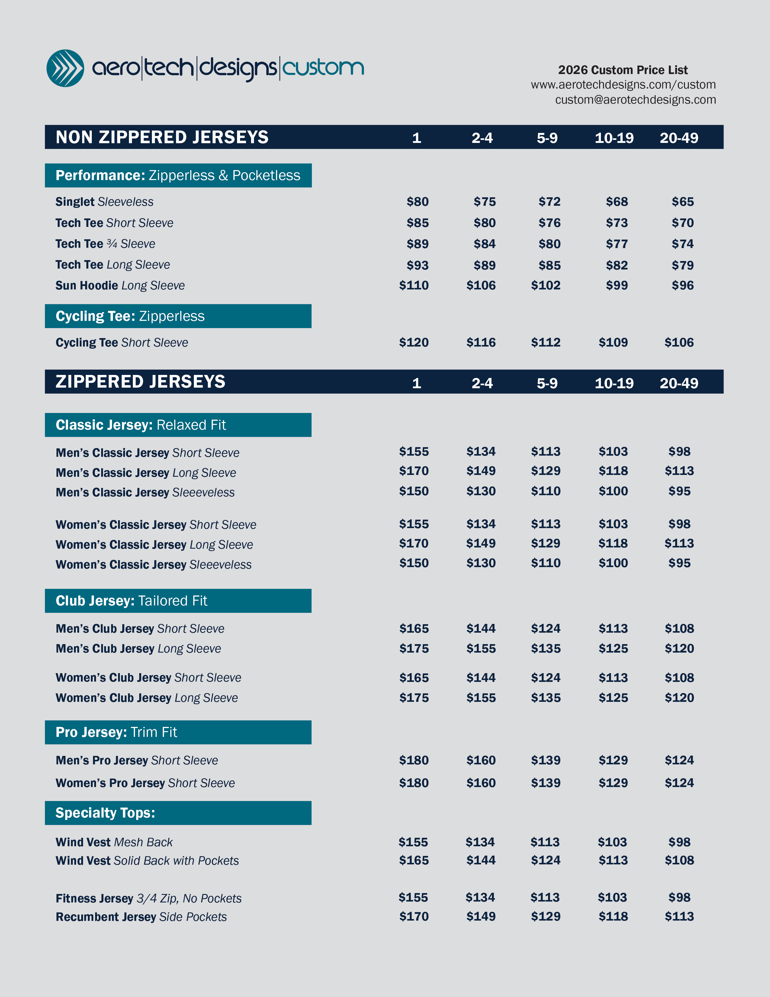Classic Jersey | $155 | $134 | $113 | $103 | $98 |