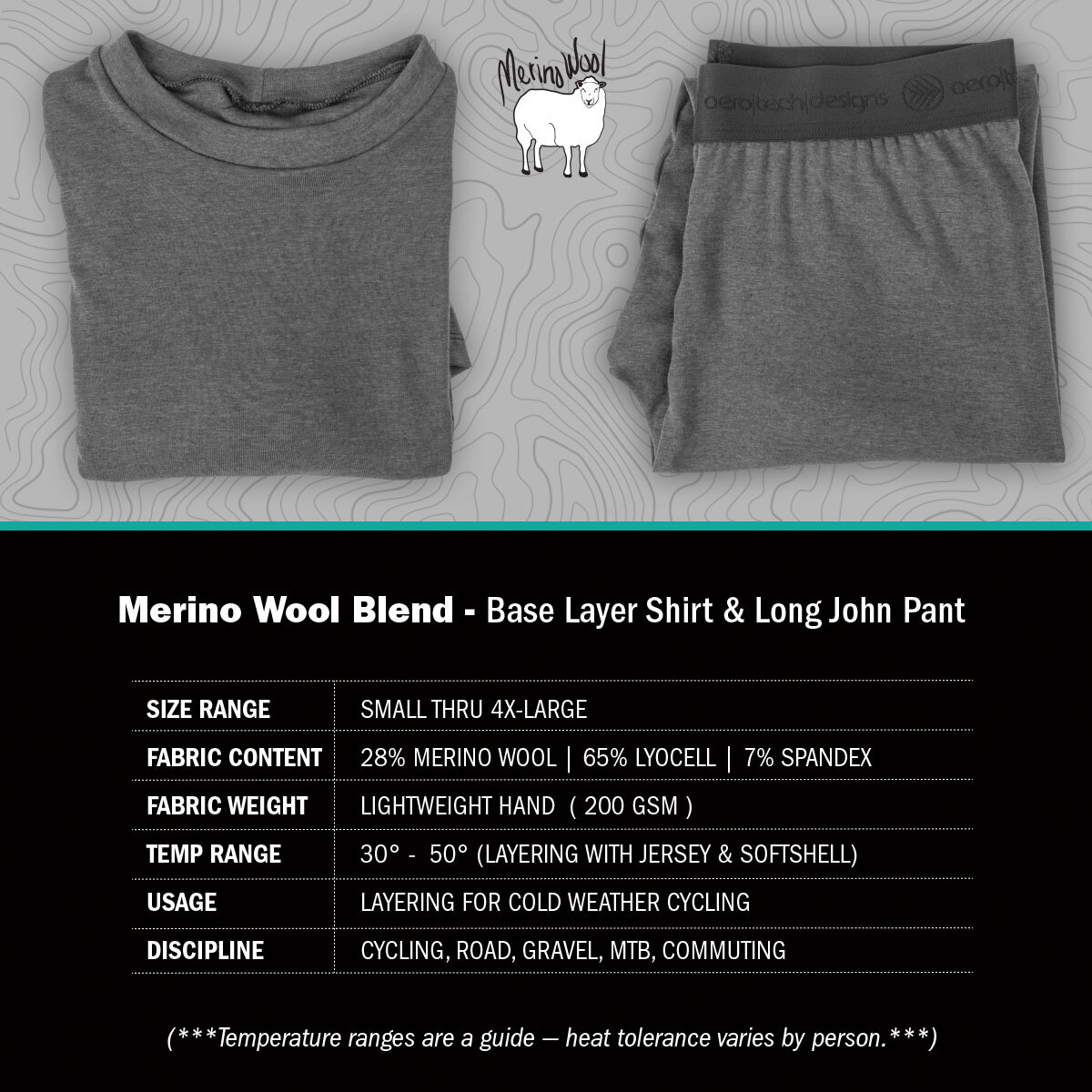 Fabrics: 65% Lyocell, 28% Merino Wool, and 7%Spandex