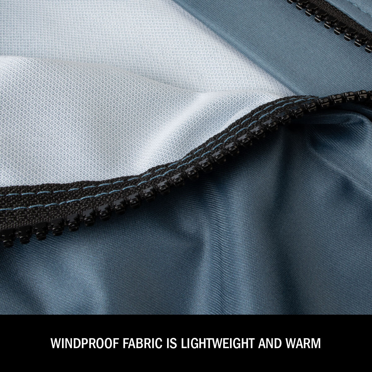 Lightweight laminated ripstop blocks wind while the soft knit backing adds light warmth and comfort; the smooth face layers cleanly and resists light spray