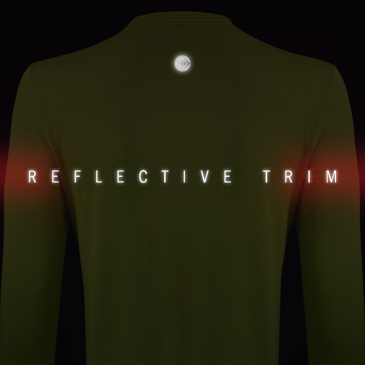 Back reflective trim increases visibility in low light by catching headlights and streetlights for safer night rides
