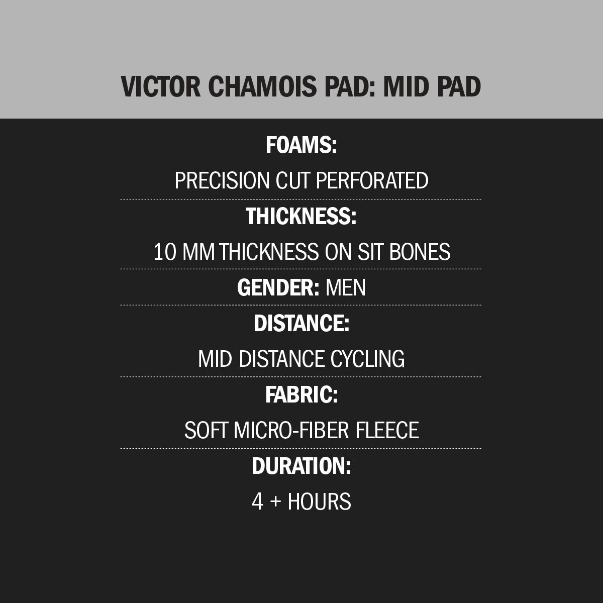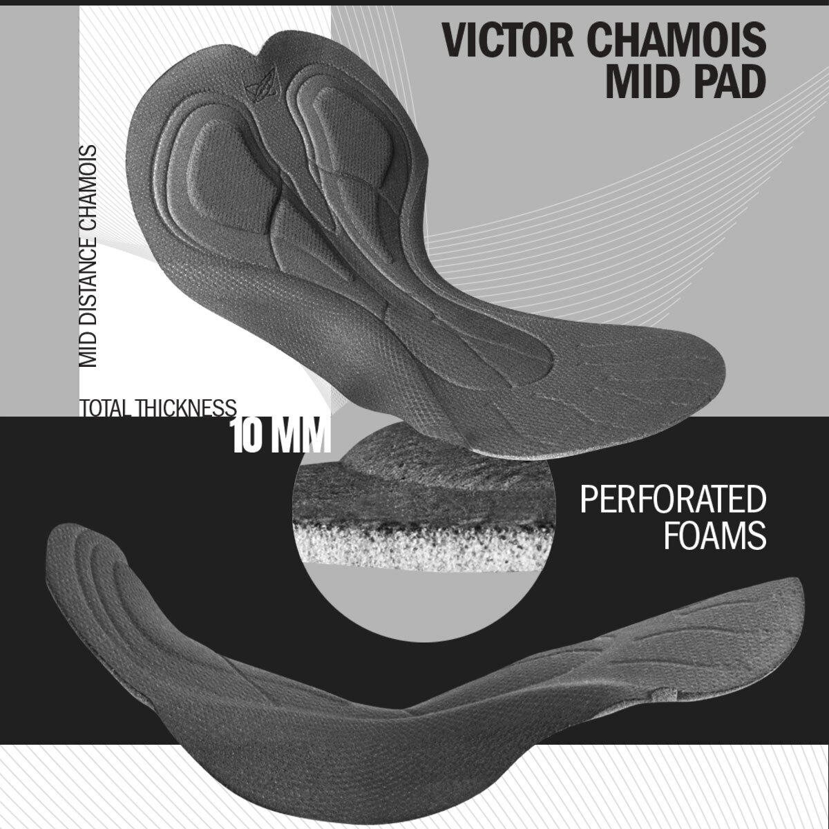 The Men's Triumph Cycling Knickers feature the Victor Chamois Pad, a breathable, shock-absorbing insert designed for comfort during changing temperatures and layering. The pad’s smooth, one-piece microfiber fleece face is stretchy and micro-perforated for optimal breathability and airflow. Made from 100% polyester, it wicks moisture to keep you dry and uses antibacterial technology to limit chafing and reduce bacteria. The 3D, multi-density foam construction provides targeted support, with thicker foam at the sit bones, mid-density perforated foam in key contact areas, and a lightweight, anti-chafe layer between the legs for lasting comfort on every ride.