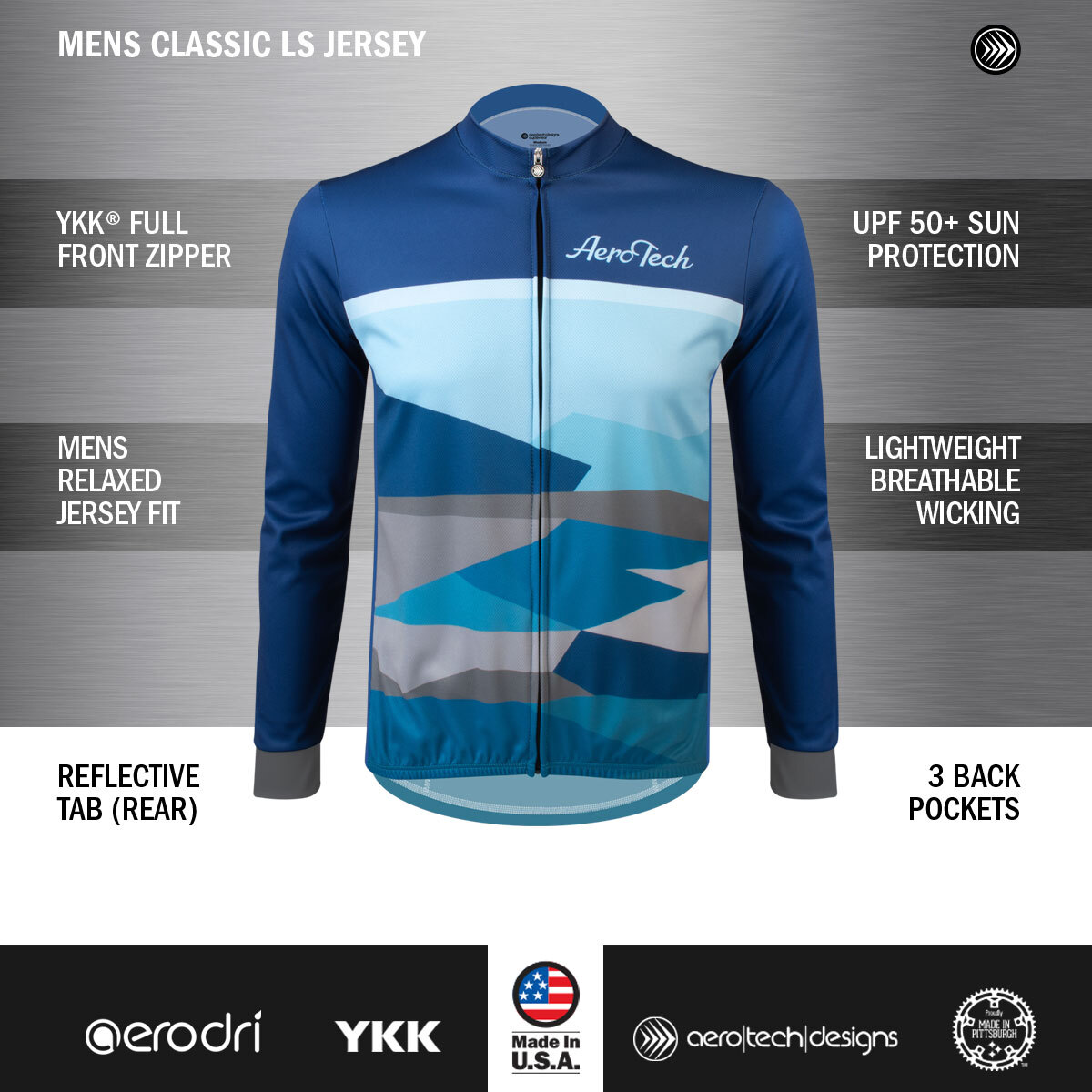 Crafted with AeroDri 100% performance polyester fabric, the jersey offers moisture control, breathability, and comfort for all-day rides