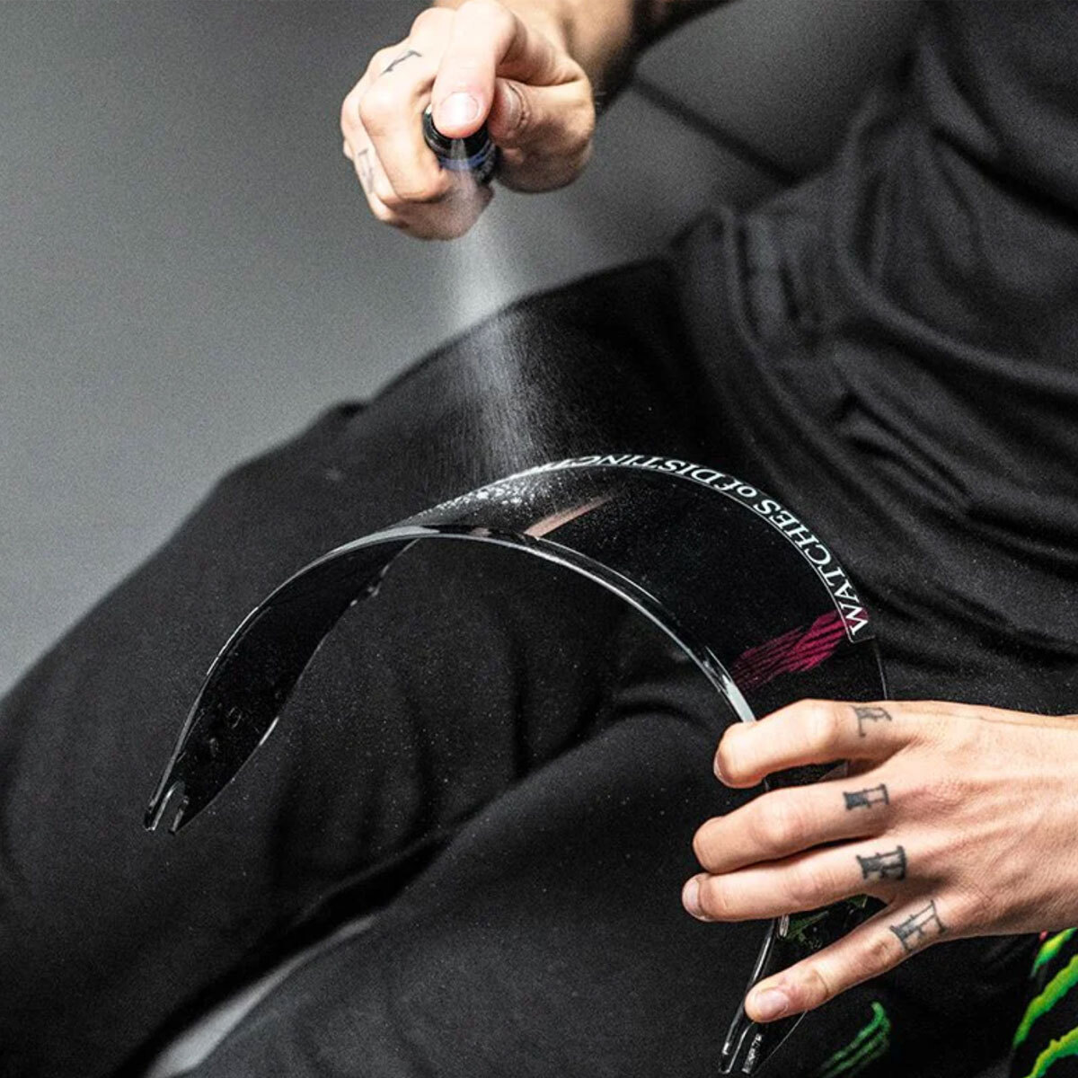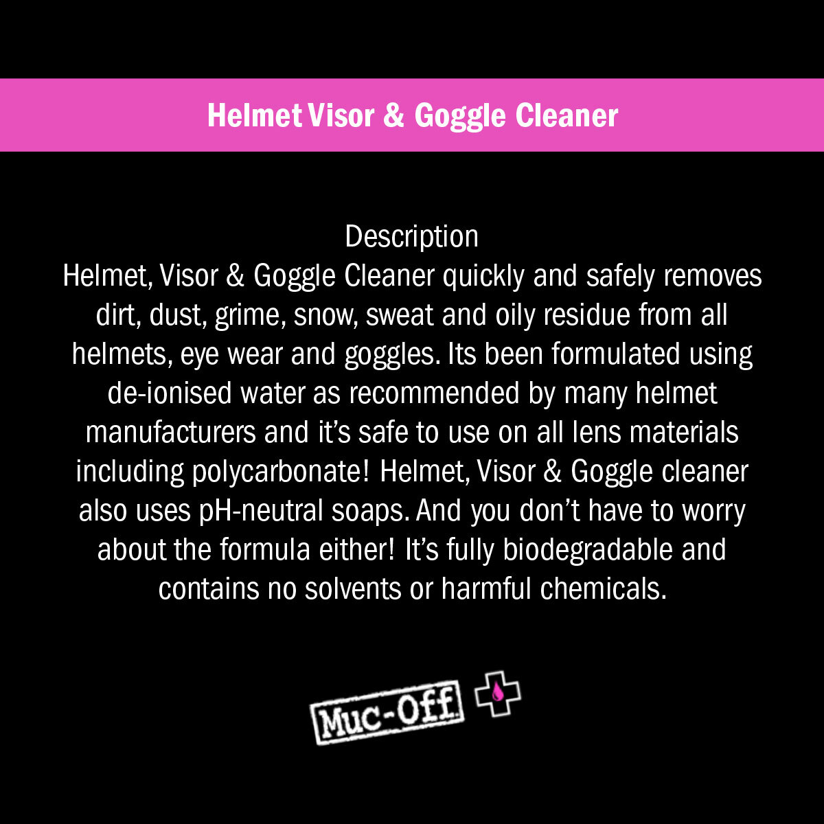 Keep lenses crystal clear with Muc-Off Visor, Lens, and Goggle Cleaner. This pH neutral, biodegradable formula uses de-ionised water to lift sweat, fingerprints, dust, and road spray without streaks. Safe for polycarbonate and most lens coatings, it refreshes helmet visors, cycling glasses, and goggles in seconds. The 35 ml travel bottle slips easily into a jersey pocket or gear bag for quick cleanups anywhere.