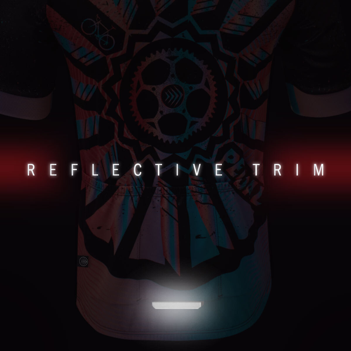 Back reflective trim increases visibility in low light by catching headlights and streetlights for safer night rides