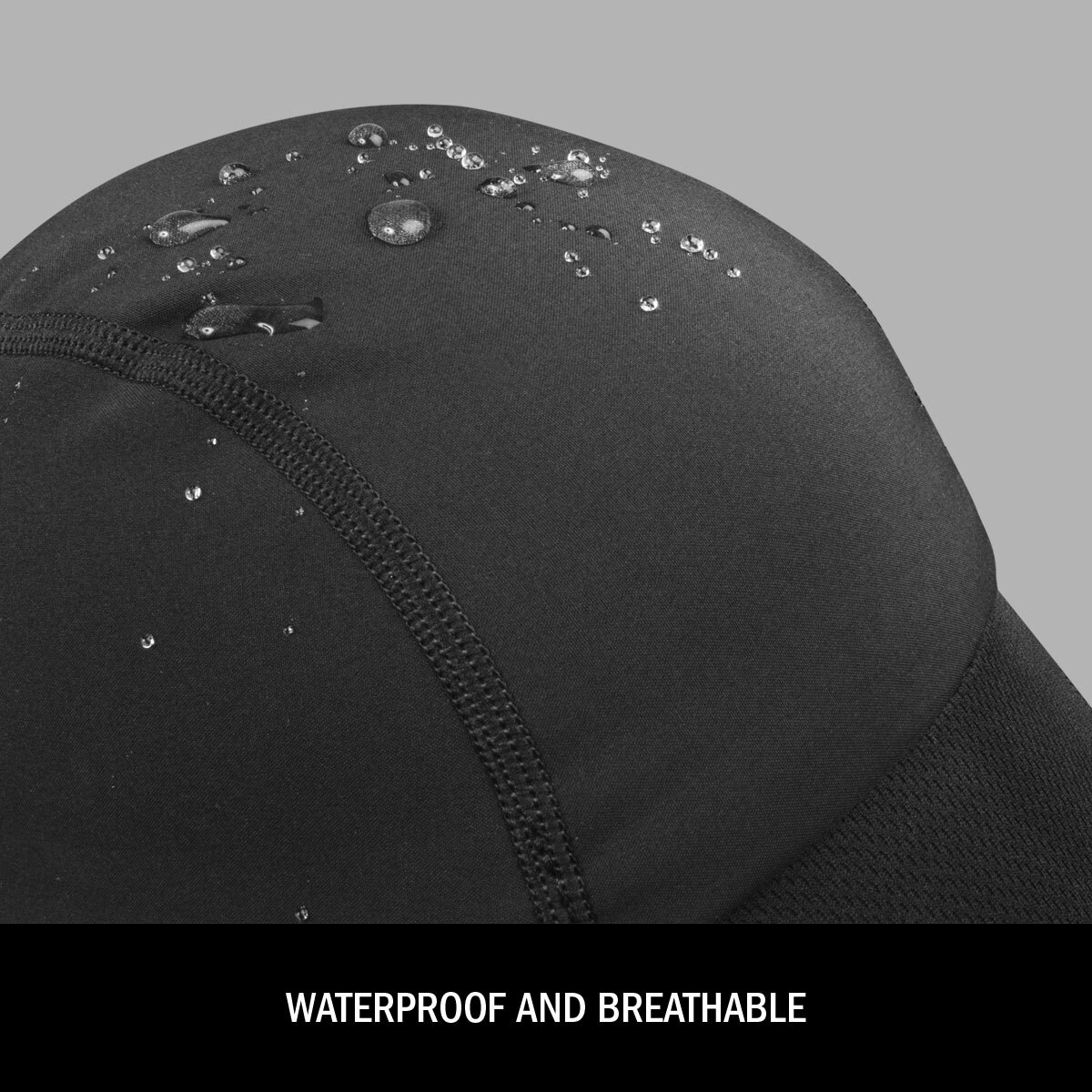 Slim fit design easily layers under helmets for cold-weather rides and outdoor adventures