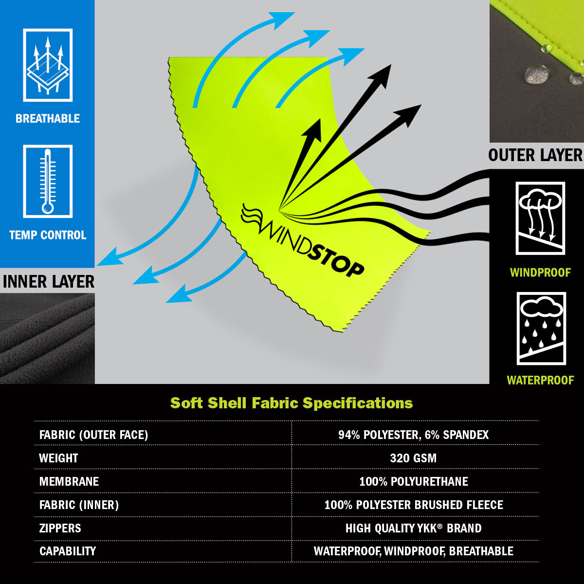 - Durable, Smooth Soft Shell Face Fabric