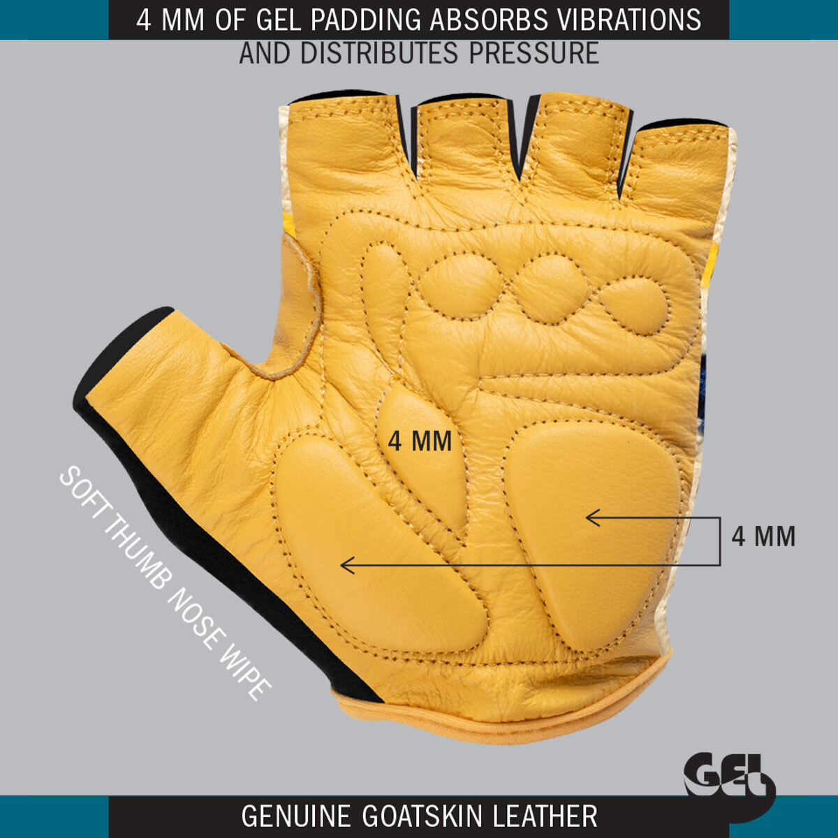 - Genuine goatskin leather palm for softness, flexibility, and hot-spot prevention