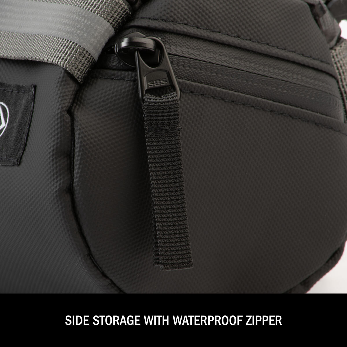 Quick-access side pocket with waterproof SBS zipper protects small essentials