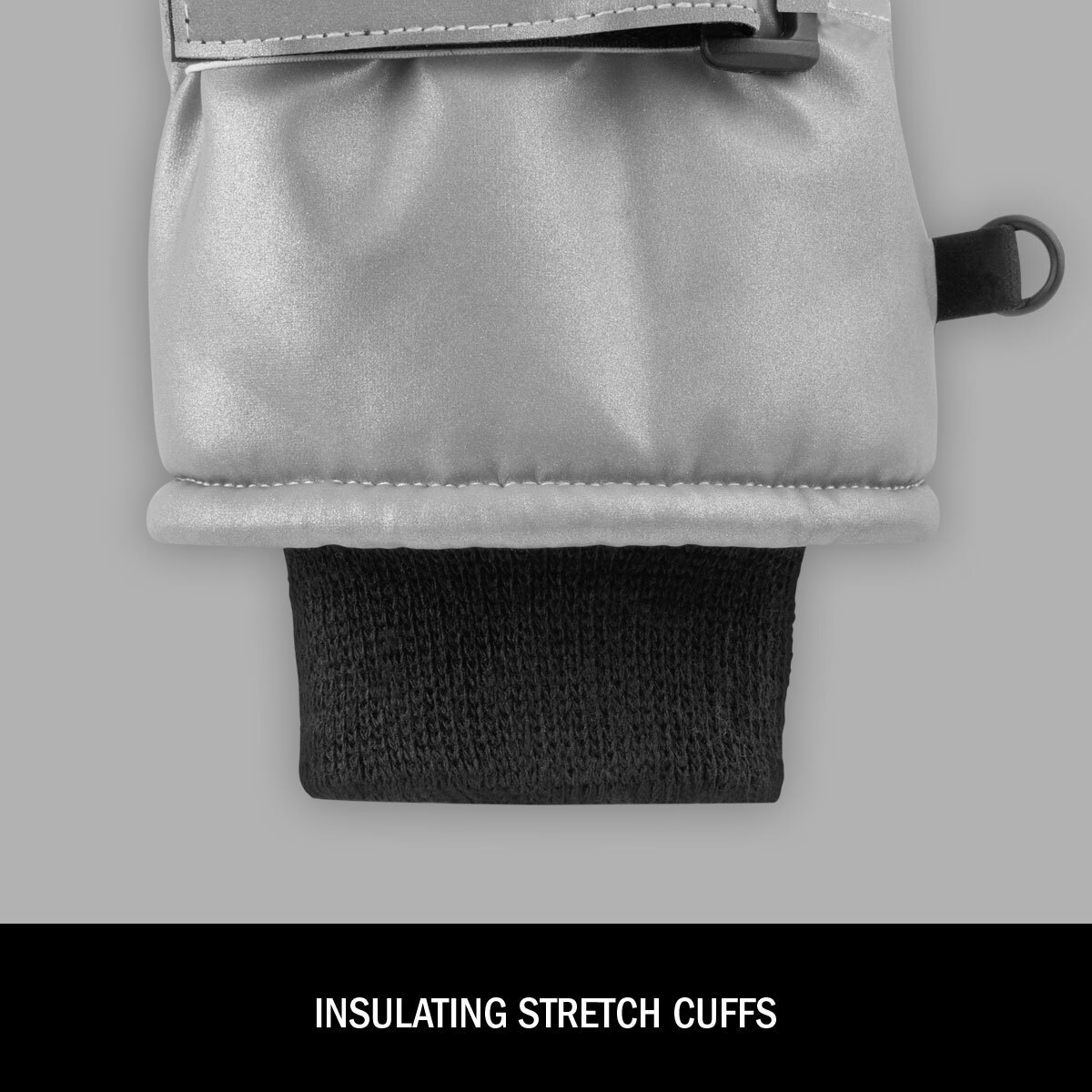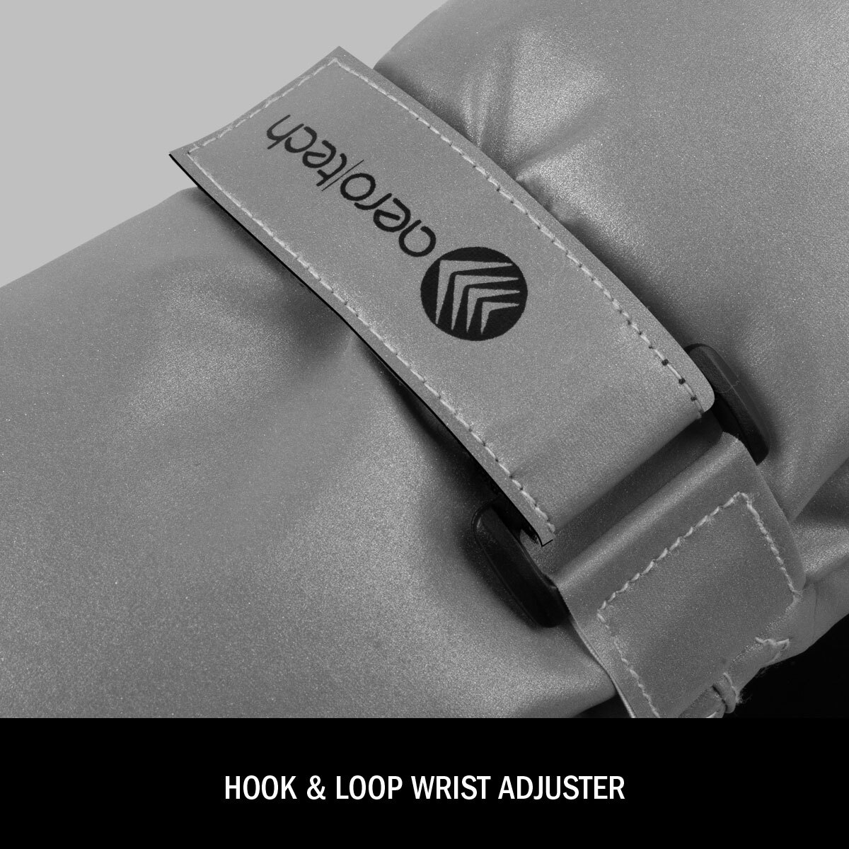 Hook-and-loop wrist adjuster secures the fit and makes on-the-go tweaks easy. Fully reflective shell enhances visibility for added safety in low light