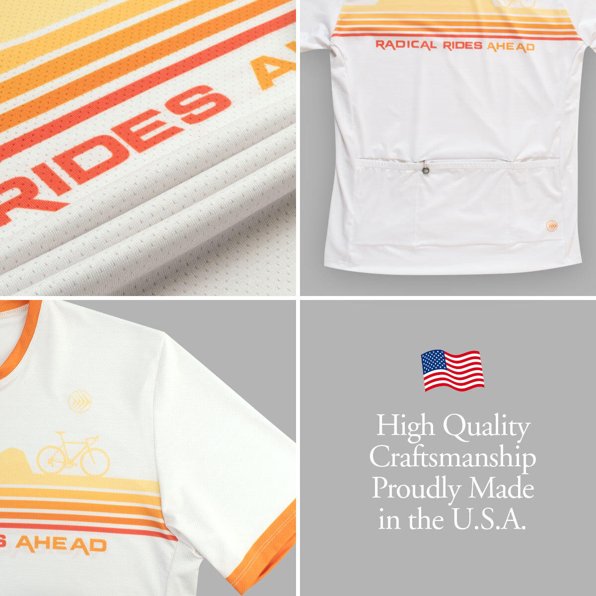 - Vintage Sunset Graphic: High-definition "Radical Rides Ahead" design with contrasting orange trim.