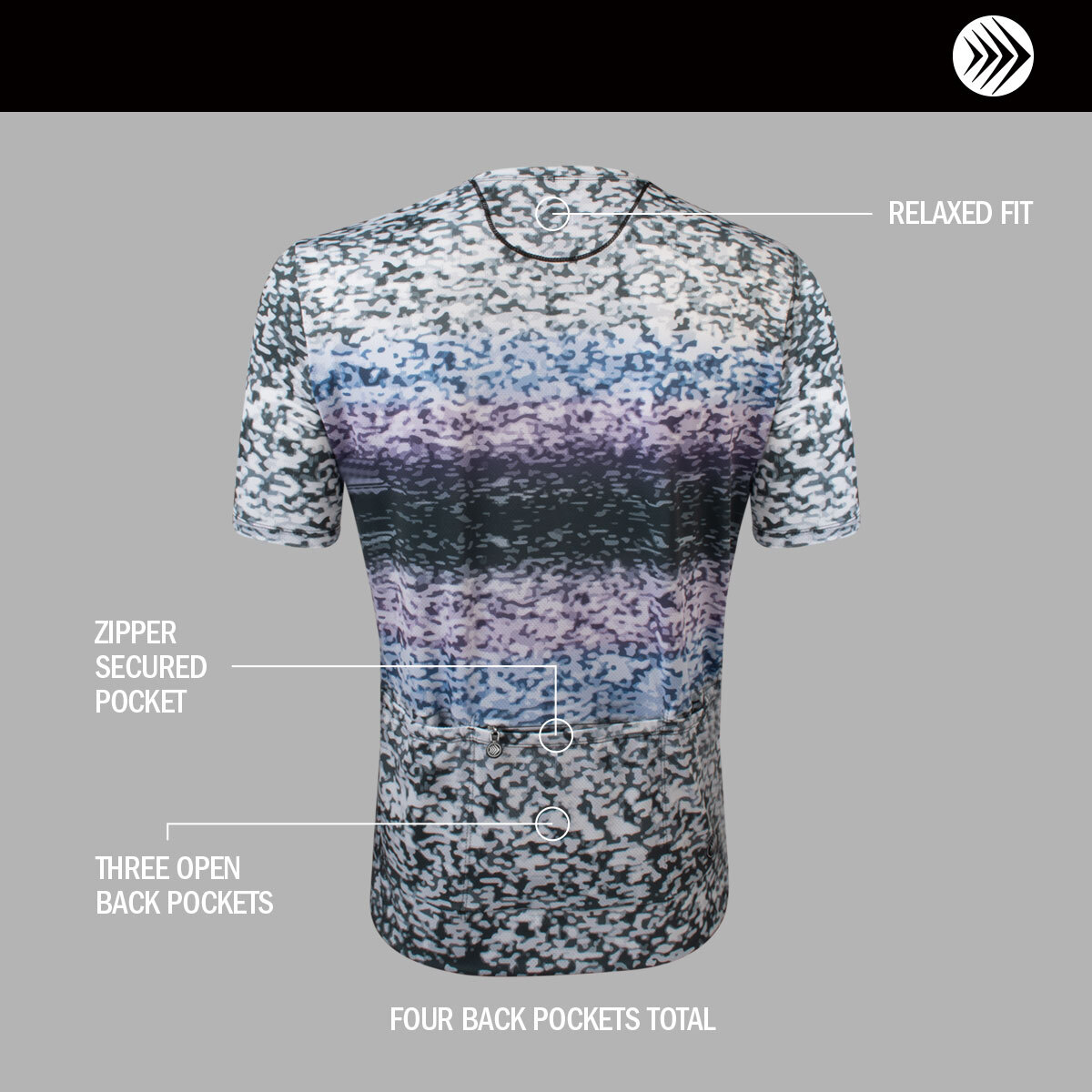 This tee features three deep open back pockets for easy access to snacks and tools, plus one zipper-secured pocket to keep your keys and valuables safe while you ride
