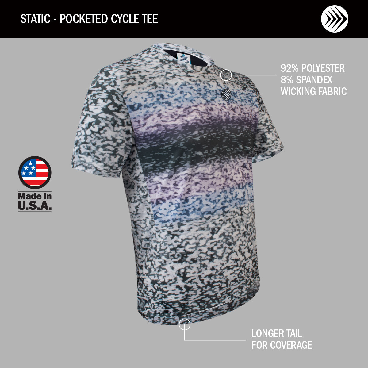Designed for a distraction-free ride, this cycle tee features a soft, tagless label in the neckline to eliminate rubbing, itching, and irritation
