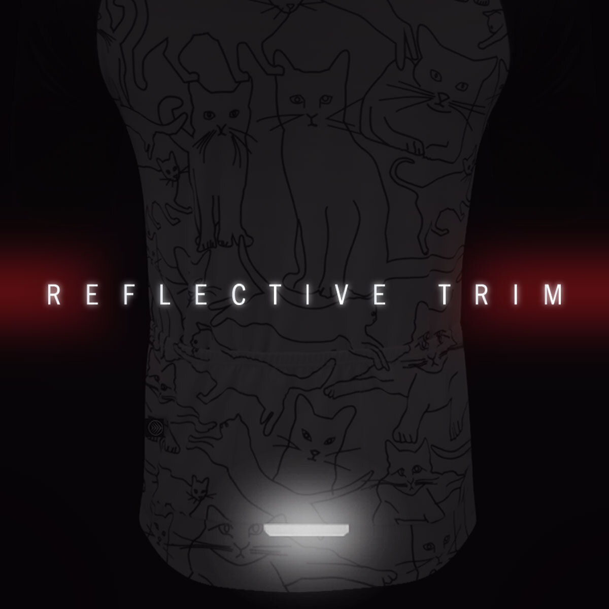 Back reflective trim increases visibility in low light by catching headlights and streetlights for safer night rides