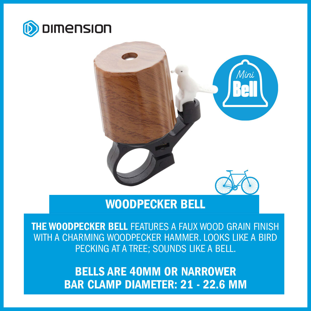 This charming bell features a faux wood grain finish and a miniature woodpecker hammer that mimics a bird pecking a tree while providing a clear, audible ring