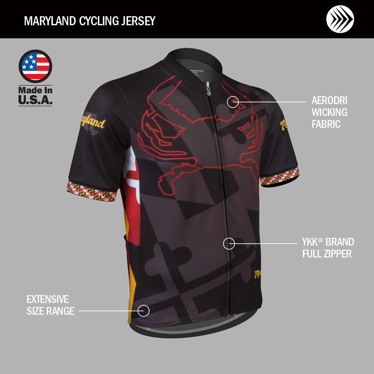 Crafted with AeroDri 100% performance polyester fabric, the jersey offers moisture control, breathability, and comfort for all-day rides