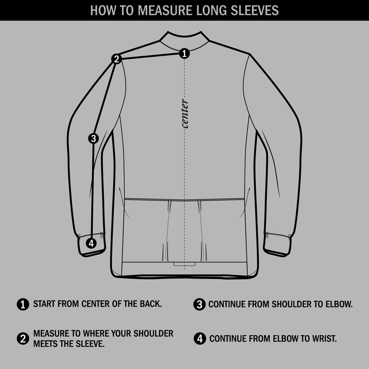 | Size | Chest (inches) | Sleeve (Regular) | Sleeve (Tall) |