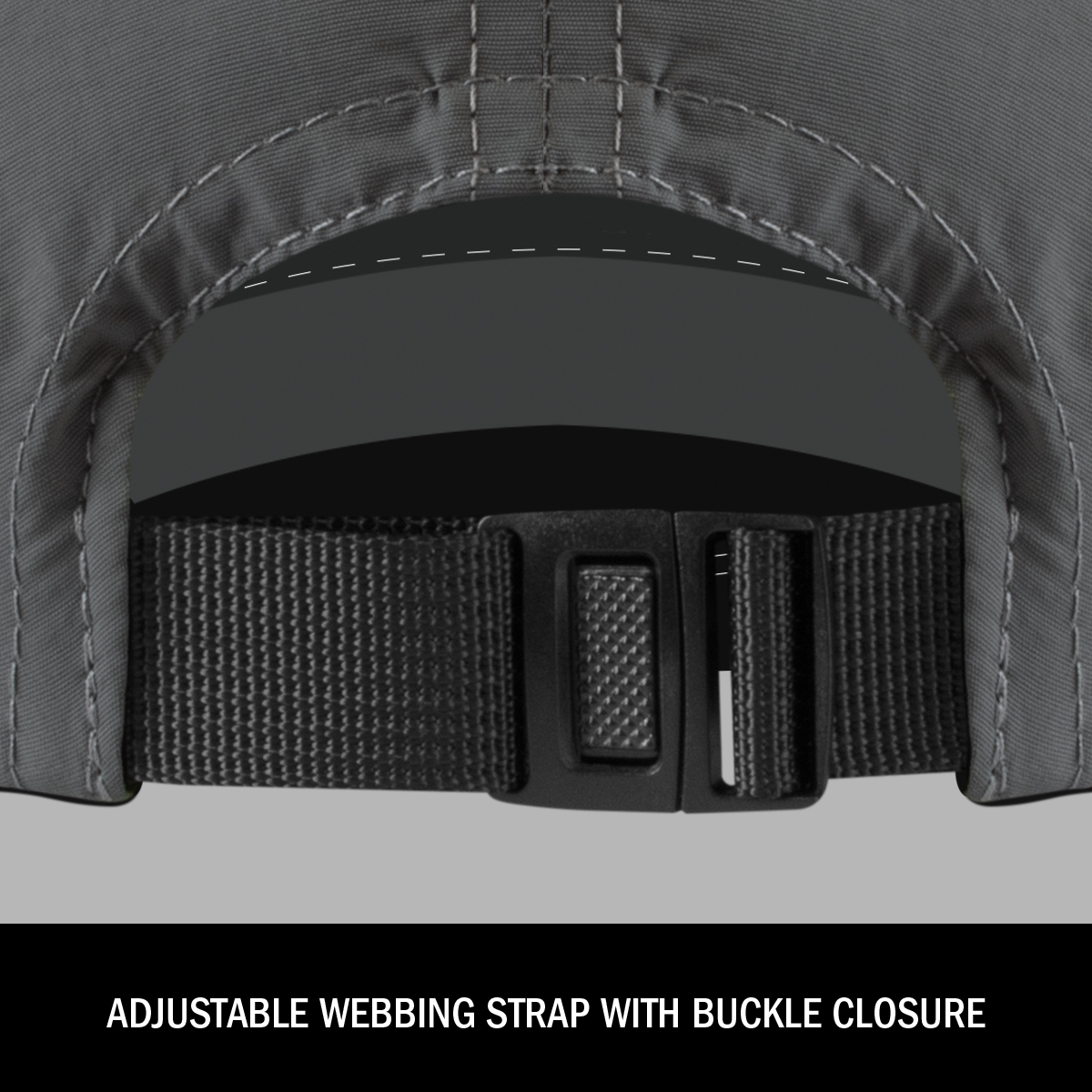 The adjustable webbing strap with buckle closure provides a secure, customizable fit that stays in place during any activity.