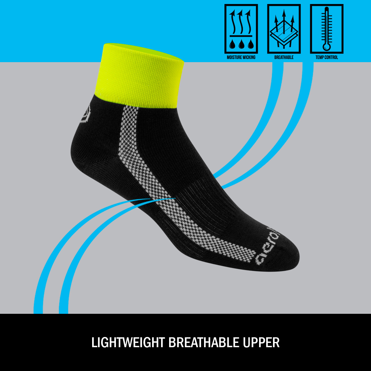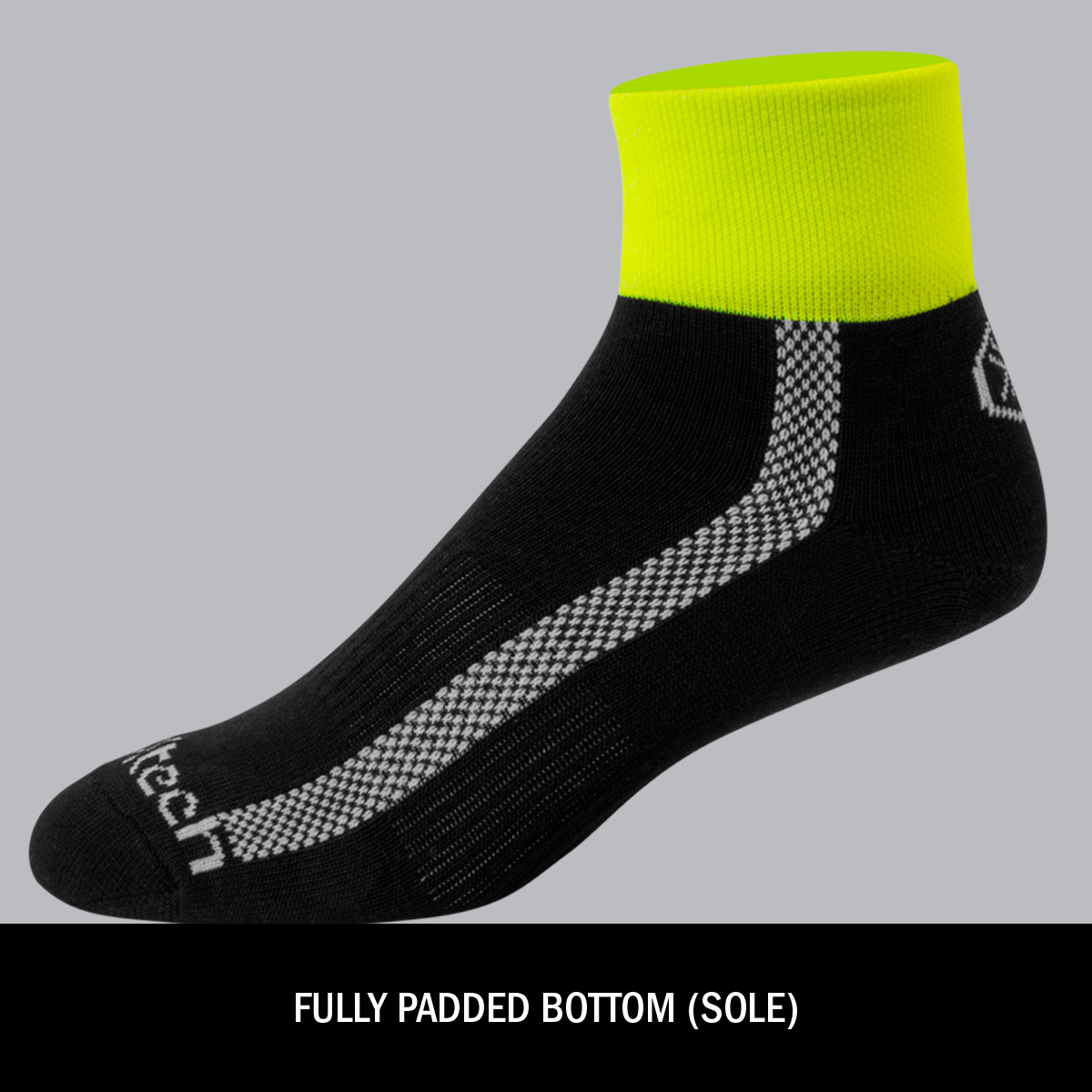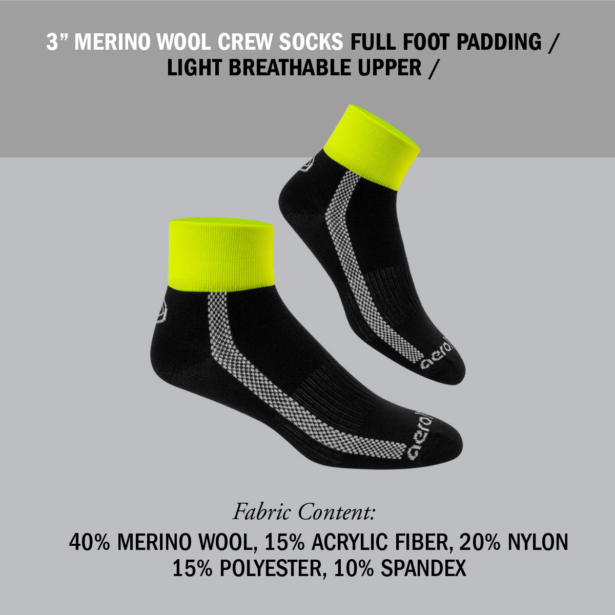 Merino wool naturally wicks sweat and dries fast, keeping feet comfortable during rides, runs, and everyday wear. These short ankle socks use a performance Merino blend with nylon and spandex for durable stretch, shape retention, and built-in odor control. A breathable knit and lightly cushioned sole add comfort without bulk, while the 3" high-visibility safety-yellow crew cuff and quality construction ensure long-lasting performance.