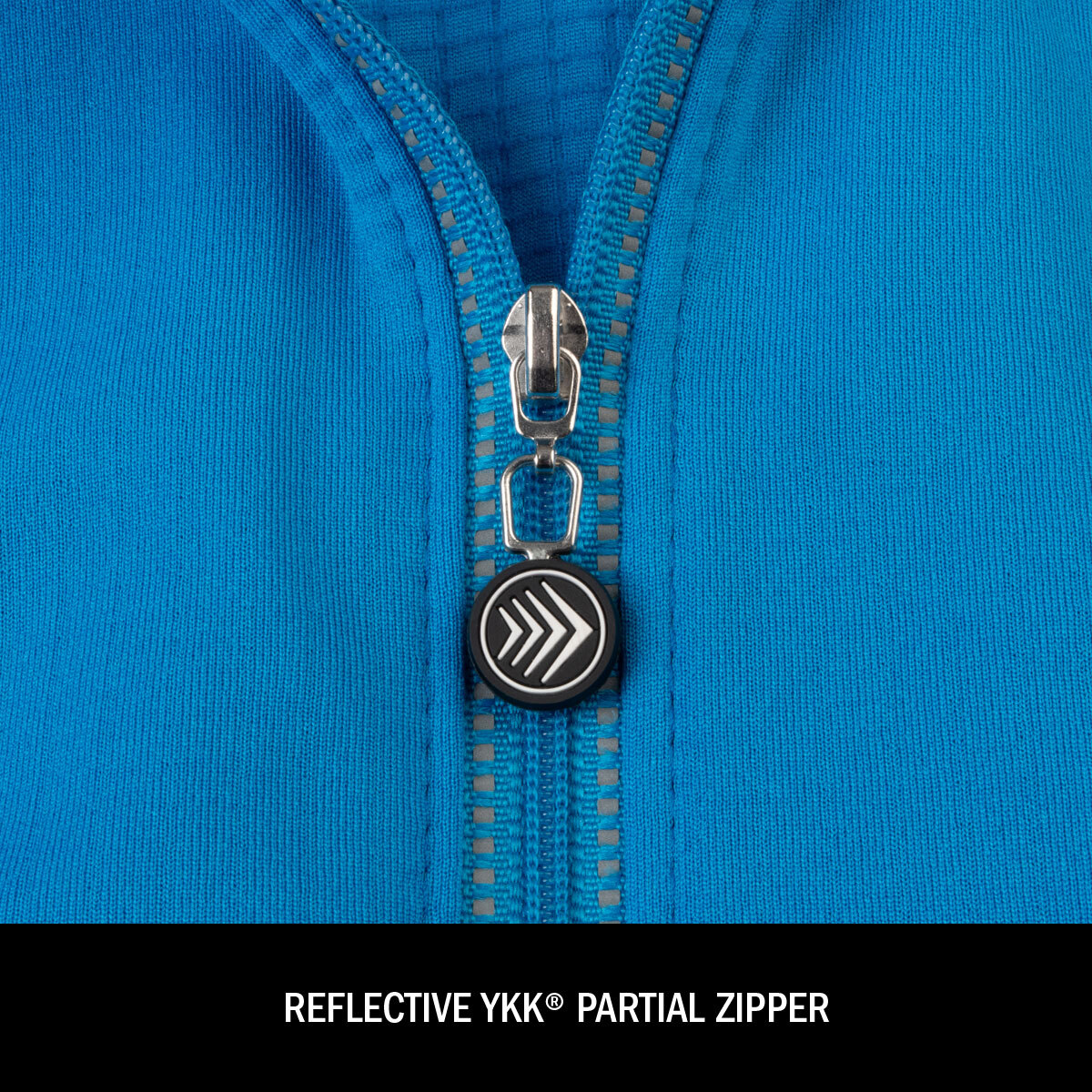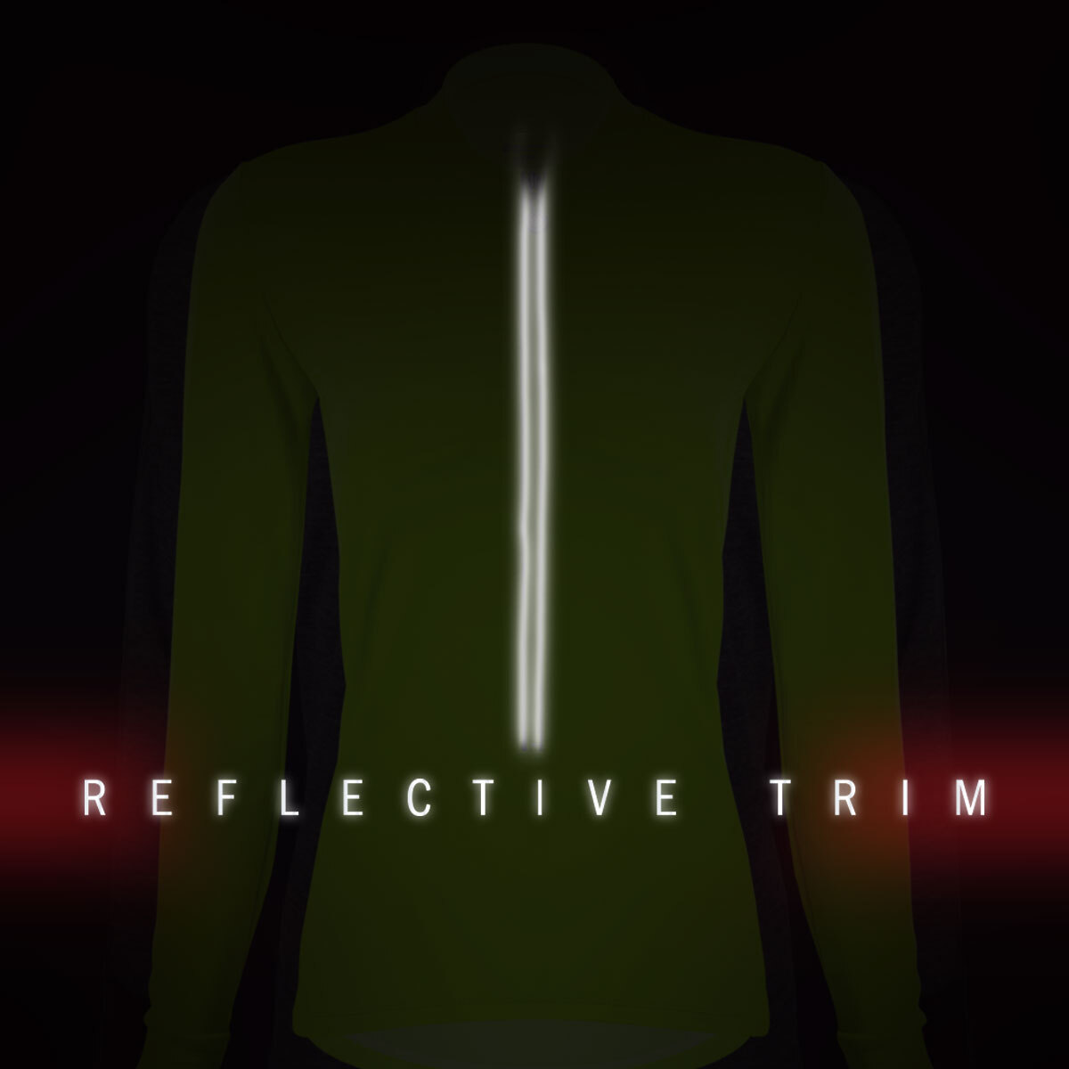A YKK® full-length zipper with reflective detail offers smooth function and extra safety after dark
