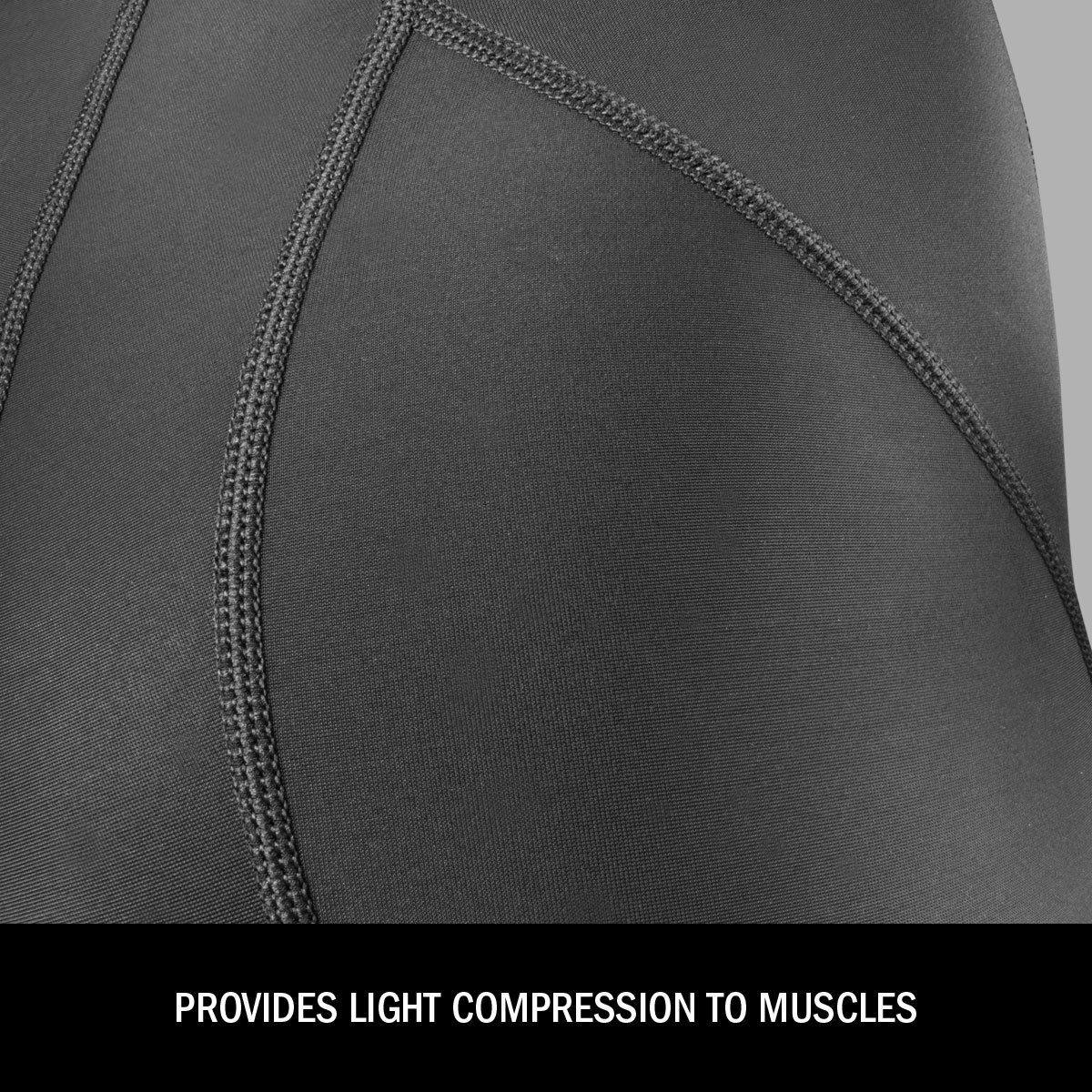 Light compression panel follows the contours of the leg to support working muscles and deliver a secure, comfortable fit during movement